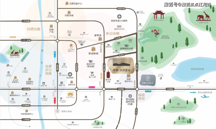 择址于昆明新迎片区的大华·锦绣麓城,地处北市区、昆明主城、昆明空港的三核之地,位于主城半小时生活圈内,构筑“三横两纵三地铁”多维度立体交通路网,打造便捷生活圈,满足不同人群多样的出行方式。
