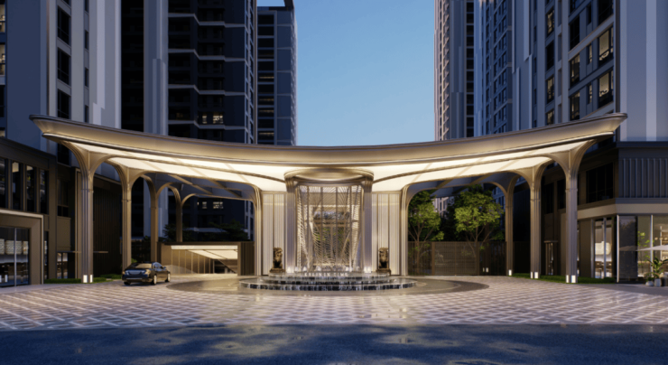 雅致门厅、轴线水景穿越喧器,踏入那扇雅致门厅,仿佛瞬间穿越至另一个世界。门厅之内,不仅是一处空间的转换,更是心灵的归宿。轴线水景潺漏流动,以其独有的韵律,洗去尘世烦恼,引领您步入一个宁静致远的逸居天地。在这里,每一处细节都透露着对生活的尊重与呵护,让家的温馨从门外开始酝酿