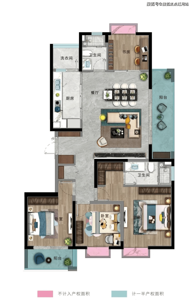 B户型:建面约140㎡,四室两厅两卫
