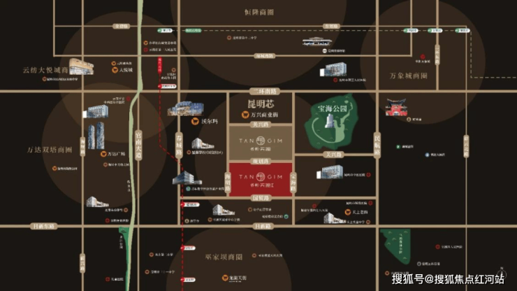 项目落址官渡区国贸关上核心,地处主城二环边,没有新区的漫长等待期,全维配套现成落地,真正实现出则繁华、入则静谧。项目紧邻宝海公园,步行可达鲜氧生态秘境;周边春城路、二环南路等主干道环绕,自驾畅达全城。