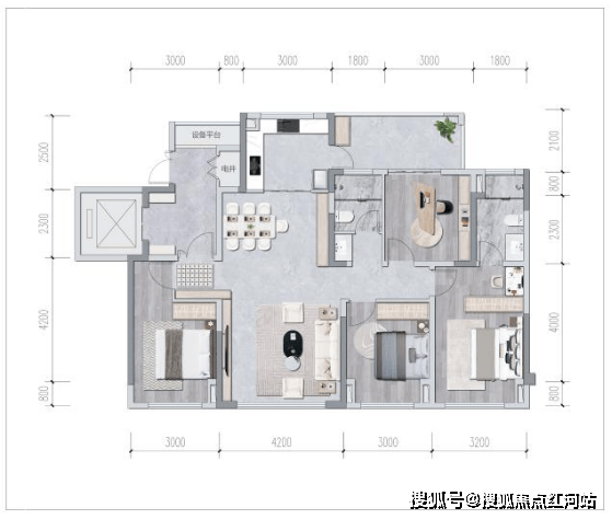 •270°至尊双主卧:双主卧套房皆配明卫、茶寮,阳光私疗愈系统恒常守护。