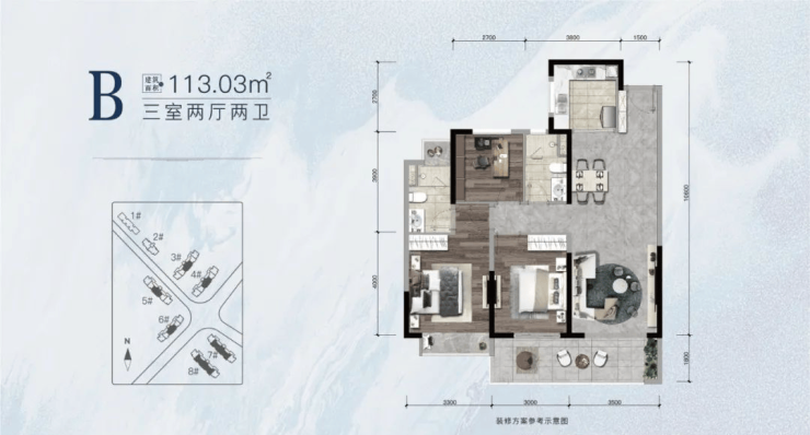 在售面积:建面约99.52-137.75㎡户型