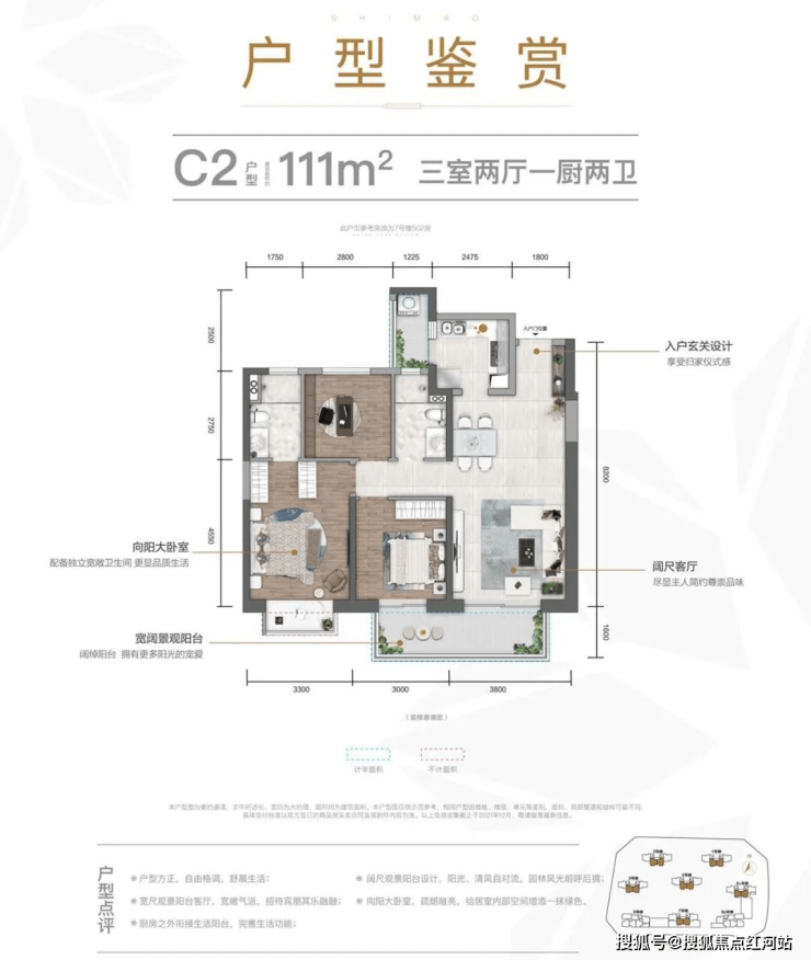 建面约111㎡三室两厅两卫:刚需爆款户型,高性价比之选