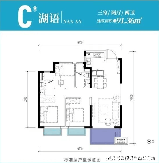 91.36㎡ C湖澜(3室2厅2卫,刚需入门首选)