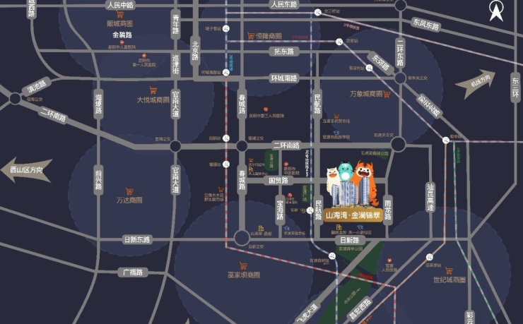 山海湾金澜锦翠傲立关上核心板块,这里是城市发展的中轴,地段优势无与伦比。周边交通网络如同脉络般发达,“一高二轨、一环五干道、多公交” 的立体交通格局,让出行变得轻松便捷。距离昆明高铁站仅3公里,快速连接省内外;地铁1号线福德站,地铁6号线菊华站,搭乘地铁可畅行全城;南二环快速线以及民航路、春城路、日新路、飞虎大道等主干道,无论自驾还是公交出行,都能迅速抵达目的地。78路、111路甲乙线等多条公交线路途经项目周边,进一步丰富了出行选择 。