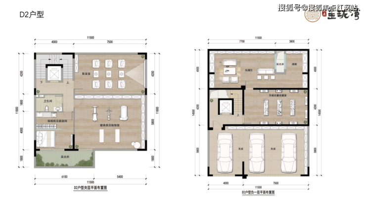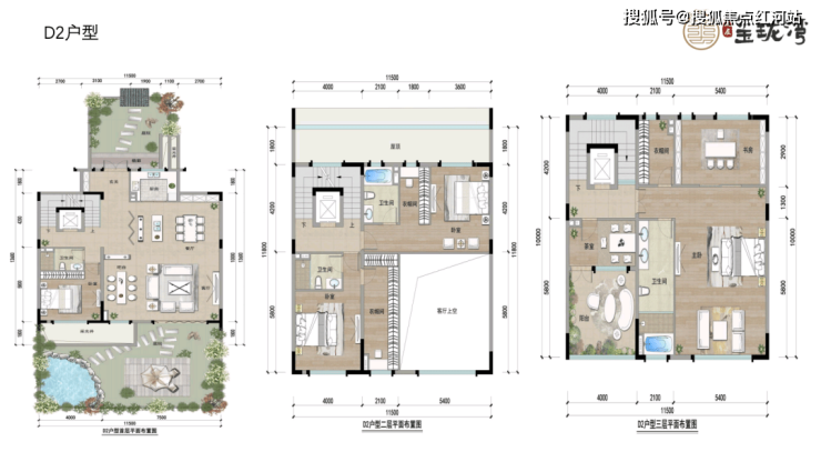 D2户型:证上面积534㎡,实得690㎡,花园约110㎡,