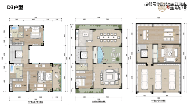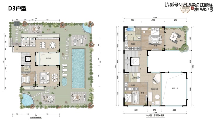 D3户型:证上面积645㎡,实得1320㎡,花园约530㎡
