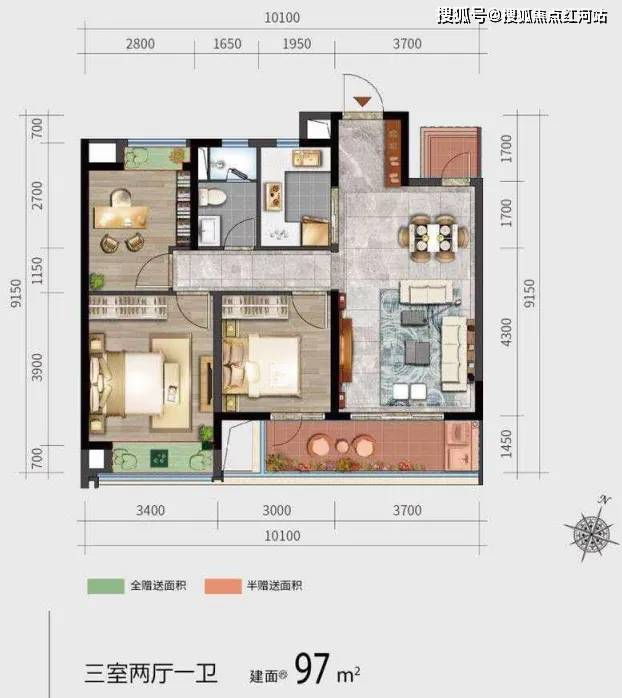 在售面积:建面约97-143㎡户型