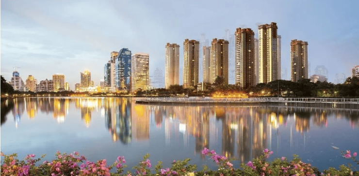 社区采用人车分流、商住分离设计保证居住静谧性和舒适度,景观为简欧园林设计,绿化率42%,项目背山面水的坡地优势,楼栋之间排布按照南北向、东西向地势形成的高差错落布局,在保证良好的采光和通风的同时,更让户型设计和视野合理舒适。