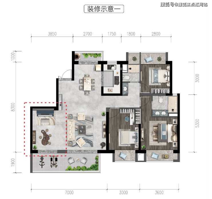 A1户型:建面约168㎡,四室两厅两卫