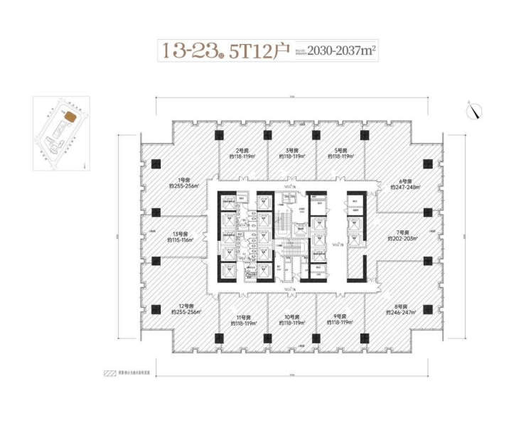 办公进深约11.7-13.2米,为国际写字楼黄金进深区间,最大化自然照明、办公使用效率,采光通风良好,后期办公可灵活布置工位、会议室等。