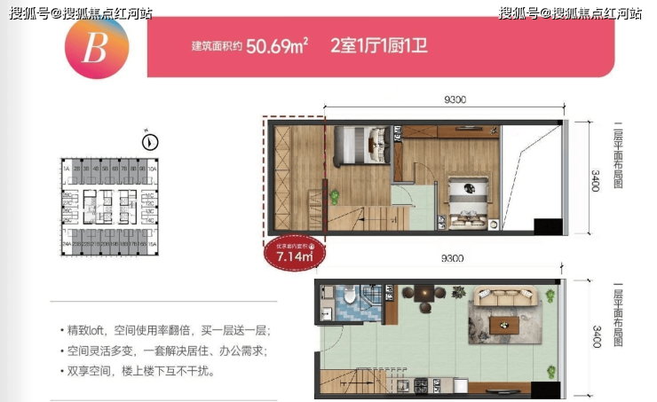 建面约28-58㎡loft公寓;建面约34-50㎡SOHO平层公寓