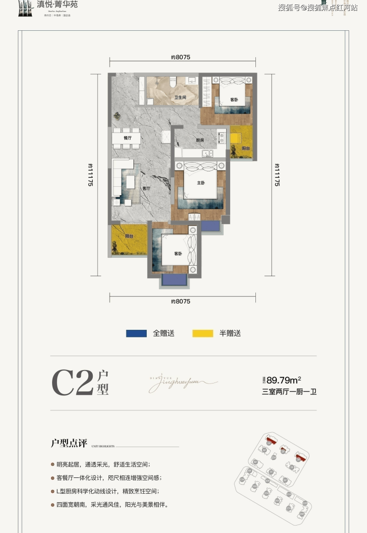 4、高居住舒适度:低楼层,低梯户比,点板式住宅,项目为16—20层,2T5—2T7户,点板结构设计,相比传统33层高层项目栋均户数少,梯户比低,居住舒适度更高;