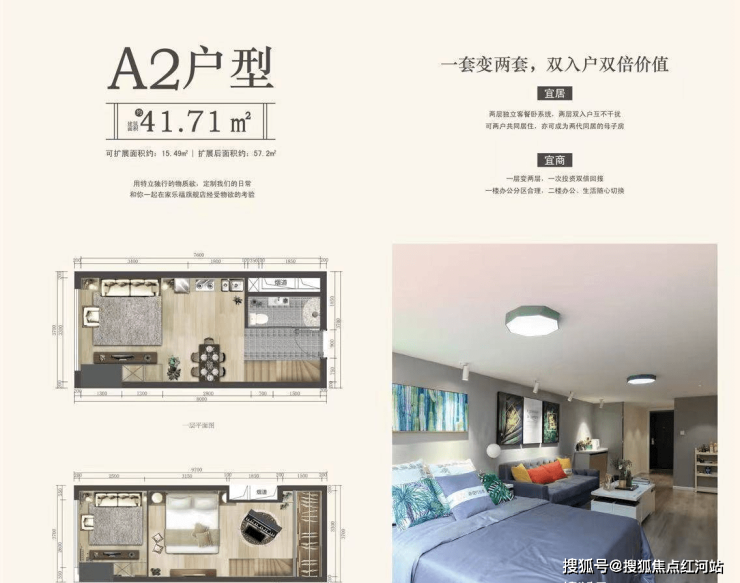 52-63㎡LOFT可灵活分隔,双钥匙设计适配单身人士、新婚小家庭居住,也可作小型工作室适配创业,还能实现双倍租金收益适配投资,精准匹配多元人群需求。
