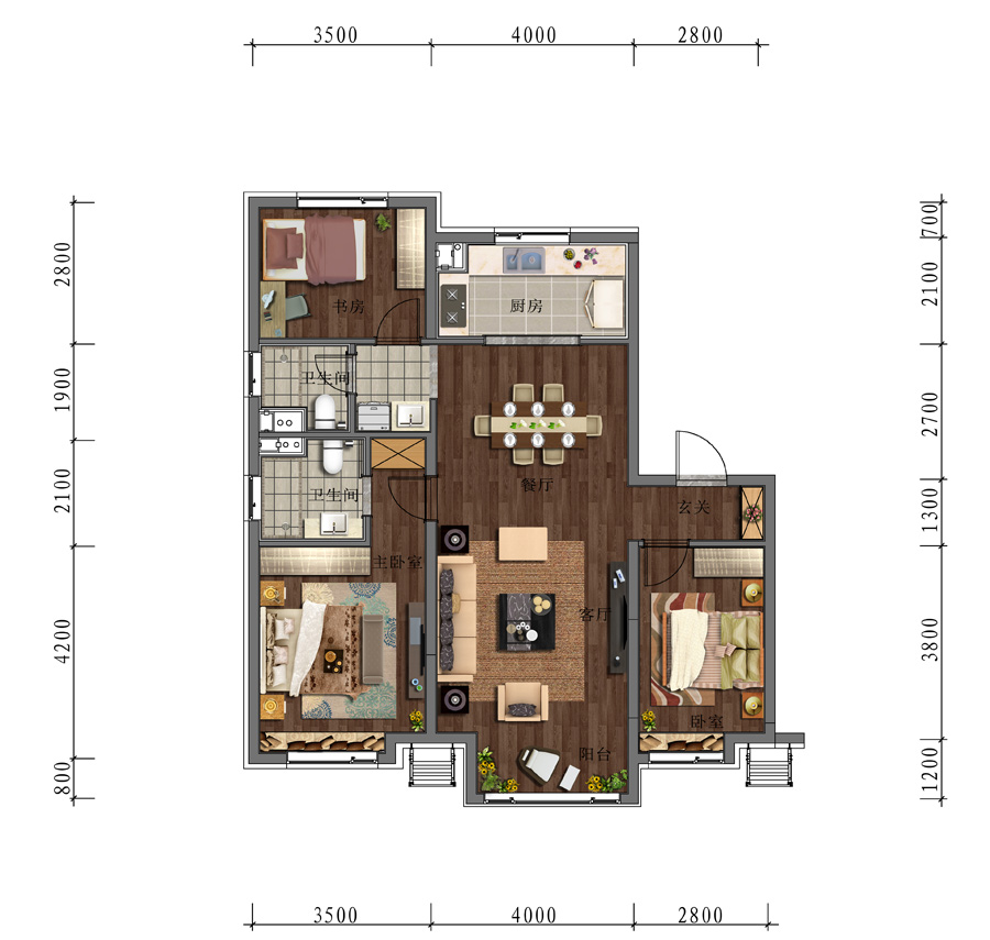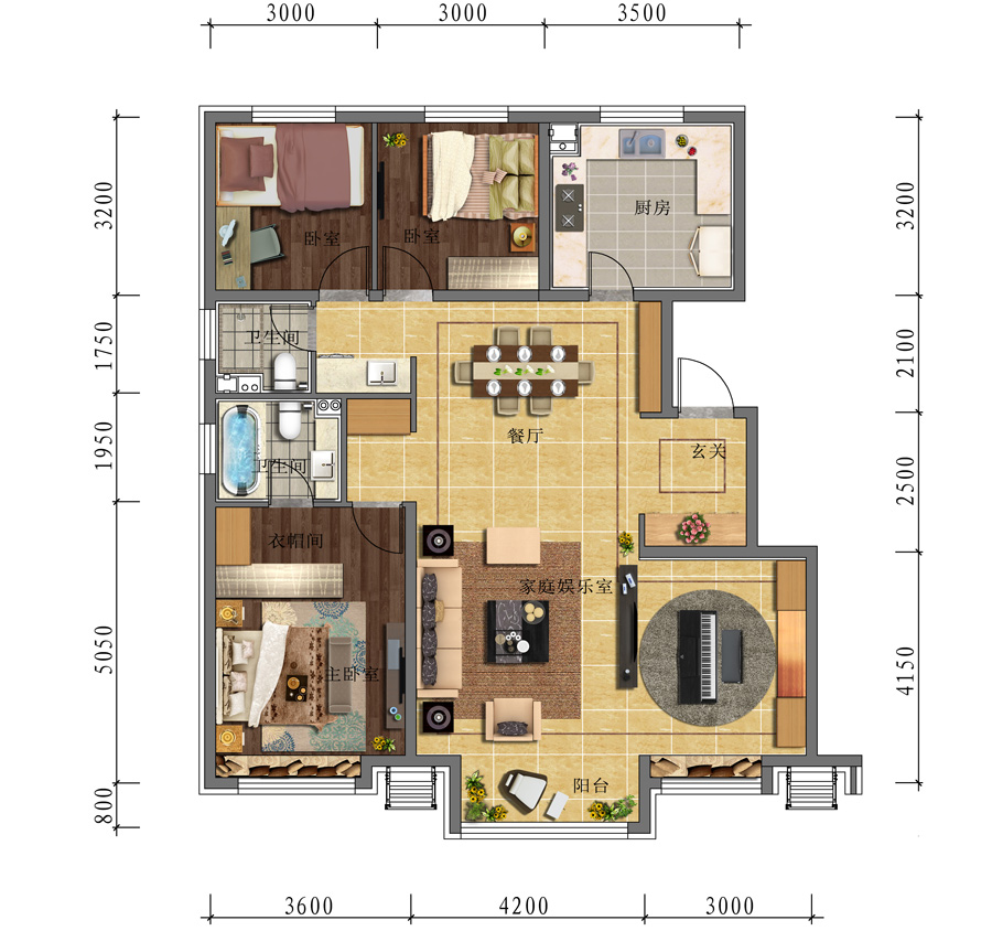 3室2厅2卫-建面116㎡三居户型