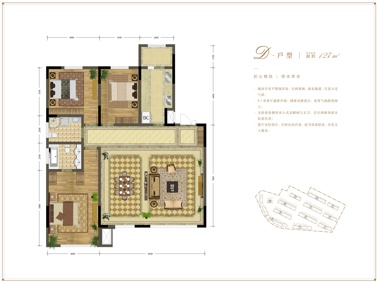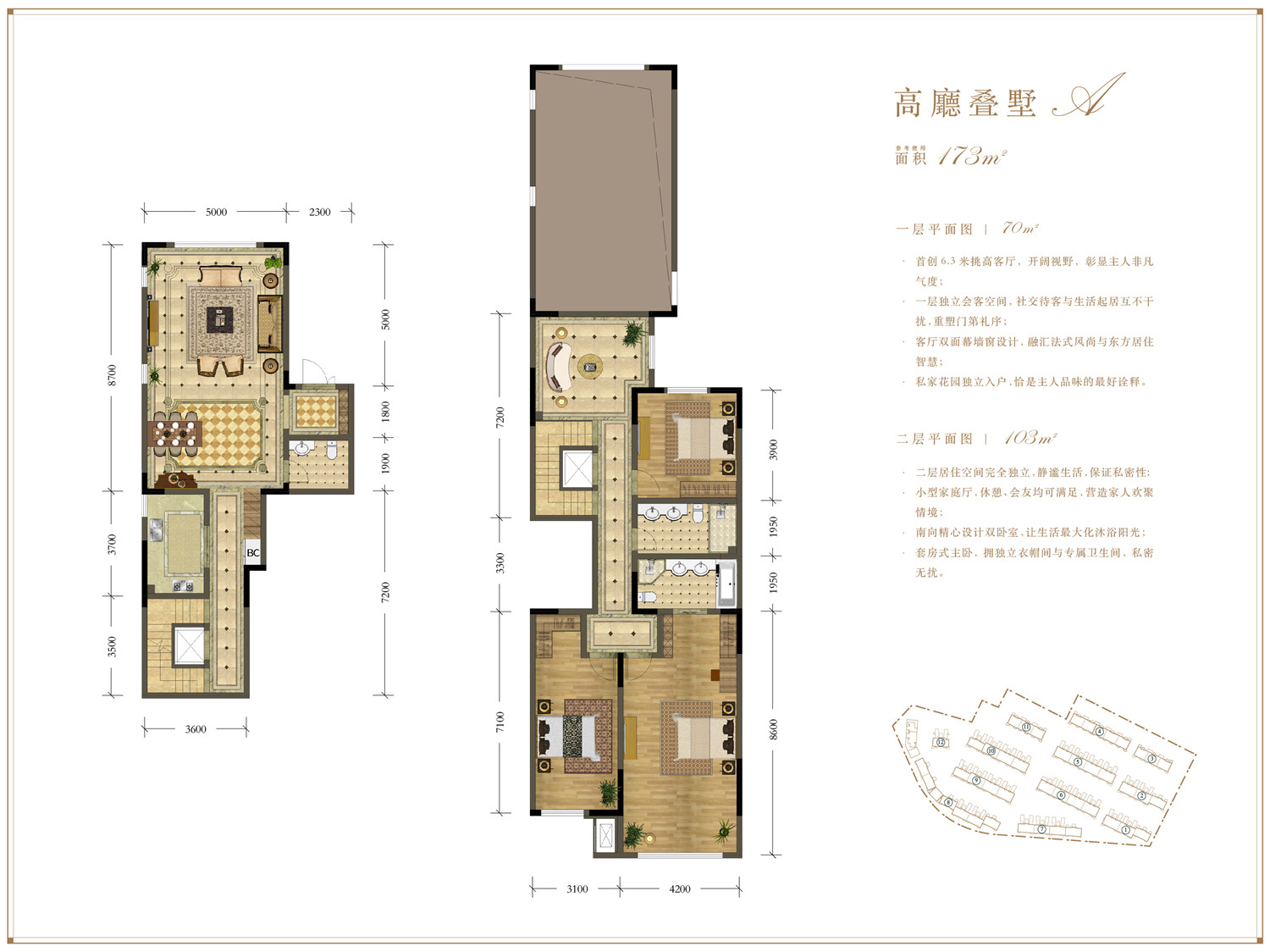 上和·树总占地面积7万平米,地上总建筑面积10万平米,容积率仅为1.41,是目前哈尔滨 少有的低密社区,项目规划建有12栋墅级洋房,仅有543户,全部为4-7层电梯洋房。 上和·树是上和·园著的升级产品,也是目前上和系产品中高品质的作品,项目由重庆SDI建筑设计事务所亲自操刀设计,全部规划了洋房产品, 4-7层不规则的楼层错落,使建筑呈现出优美的韵律感,1.41的容积率。其次,在建筑风格上,简洁、低调的法式风格,外立面全石材干挂,卡拉麦里金石材和锈石相结合,在感官上,满足了世人对美和奢华的追求。 户型设计: 上和·树项目的主力户型使用面积区间在110--208平米左右,为了给客户提供更好的居住品质,层高达到3.15米,整体户型尺度都比普通住宅更舒适,并且满足个性化的需求。 一:首层高厅叠墅。拥有6.3米挑高客厅,空间开阔、大气,一层客厅、餐厅相连,二层是居住空间,保证居住的私密性; 二:首层宽厅院墅户型。首层宽庭院墅拥有8.2米超大开间客厅,整个客厅棚顶无梁无柱设计,大气舒适。一层起居室公共空间及两间卧室, 适合三代同堂家庭有老人居住;二层独立主卧室、书房,彰显主人的空间私密性和舒适度; 三,顶层赠送阁楼空间。阁楼层设计更是突破常规,打破以往全部坡屋面的设计,为了使顶层的空间更加舒适,增加了南向平窗的元素,层高与正常的户型层高接近,空间的舒适度更高; 四,高舒适度的标准户型。标准层户型层高更是达到了3.15米,超大宽厅、八角窗、南北通透、采光好,户型百变、随心。将采光面及景观点扩大化, 令阳光肆意洒满每个房间,更是满足高知高阶人群的居住需要。 五,超大的赠送空间。项目 首层户型赠送两层地下空间,赠送的面积约100-200平米,可以做独立的衣帽间、影音室、桌球室、健身室等等,顶层赠送阁楼空间;不管 还是自住,都会是很好的选择。 六,首层私家花园独立入户。项目高厅叠墅和宽厅院墅户型均为私家花园独立入户,独立私属的自然空间,可以根据自己的意愿,设置亭台、座椅,打造亲近自然的休闲空间。 园林规划: 上和·树的景观设计由新加坡柏景景观园林公司操刀,是继上和园著之后再次与其合作,新加坡柏景景观设计公司拥有丰富的设计经验,与万科集团、绿地集团、中海集团等均有深度合作,在上和园著的园林景观上进行再升级,彰显了法式居住的“尊贵、简约、精致”内涵。园林理念可以用“三轴九苑,五重景观”来概括,营造尊崇的秩序感、仪式感,将法式园林尊贵,简约,精致体现的酣畅淋漓。在小区景观硬铺装材质的选用上,全部采用了异地购置的多种颜色和纹理的锈黄荔枝面、光面等花岗岩,各种造型的景墙和地面石材铺装,法式的庄重和大气在此体现。 在功能划分上,考虑到老人与儿童等不同年龄段的人们对运动形式的需求,突破常规的设计手法,运用五块场地打造全龄运动休闲广场,将运动休闲融入到独特的景观环境中,设计有童趣天地、健身运动场、景观会客厅,邻里休闲等活动区域,也增加了立体的活动空间,下至0-6岁,上至半百老人都能得到运动和憩息的空间。 配套方面: 小区将采用全封闭式物业管理模式,社区内部不舍商业,保证社区的居住品质。外部的公共生活商业配套足够完善,在社区外部设置一些特色商业,打造一条风情商街,便利店、咖啡、烘焙店等,也将 ,让您几乎足不出户也能满足 生活需求。 社区内部完全的人车分流设计,社区设有三个出入口,分别位于南侧马家沟河,北侧松新街以及东侧的原花卉入口的景观轴。小区设有地下车位678个,子母车位83个,地下车库全部为精装修地库,每栋楼的每一个单元的电梯都可以直达地库。一层的业主则可以通过自家的地下空间直达车库,体现我们业主的尊贵。 上和·树从设计、选材到施工,都体现法式的高贵血统:外立面立面采用卡拉麦里金和锈石名贵石材,全石材干挂,历久弥新,高贵精致。建材配套的选择,是按照五星级酒店标准来要求,窗全部采用森鹰S86系列高档铝包木门窗,森鹰品牌窗是中国窗业的领导者,有300多项专利技术。 楼宇电梯采用的是德国 品牌蒂森克虏伯,拥有高级指纹密码锁,精装双入户大堂,全部采用天然理石切花铺贴,不锈钢艺术装饰墙面等,彰显法式建筑的尊贵和奢华。 项目施工单位是南通四建,国家特级资质的施工企业,重金聘请金螳螂作为装饰设计和施工单位,金螳螂是国内设计装饰上市公司,连续13年先进中国建筑装饰百强,连续三年被福布斯授予亚太地区 佳上市公司50强,代表作品:鸟巢、中国国家大剧院、人民大会堂。 在社区的智能安防方面,小区拥有全方位的智能化配套体系,如大屏楼宇彩色可视对讲、全天闭路监控系统、小区一卡通系统、门襟系统、停车场管理系统等等