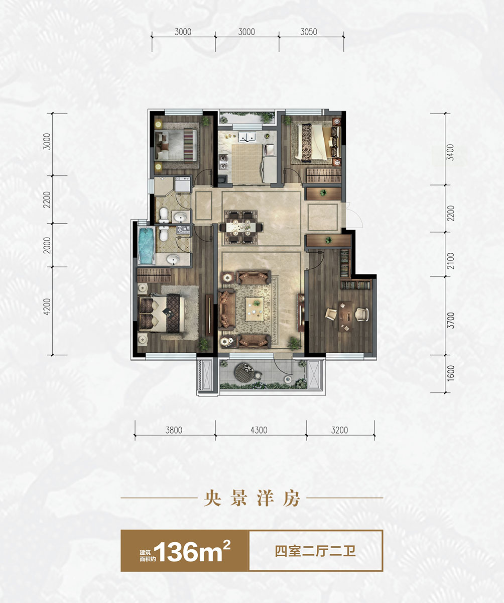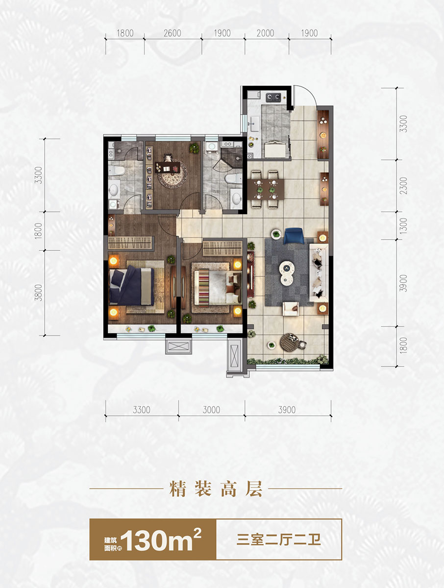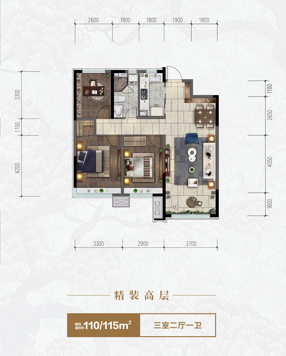 3室2厅1卫-建面110/115㎡-精装高层-三居