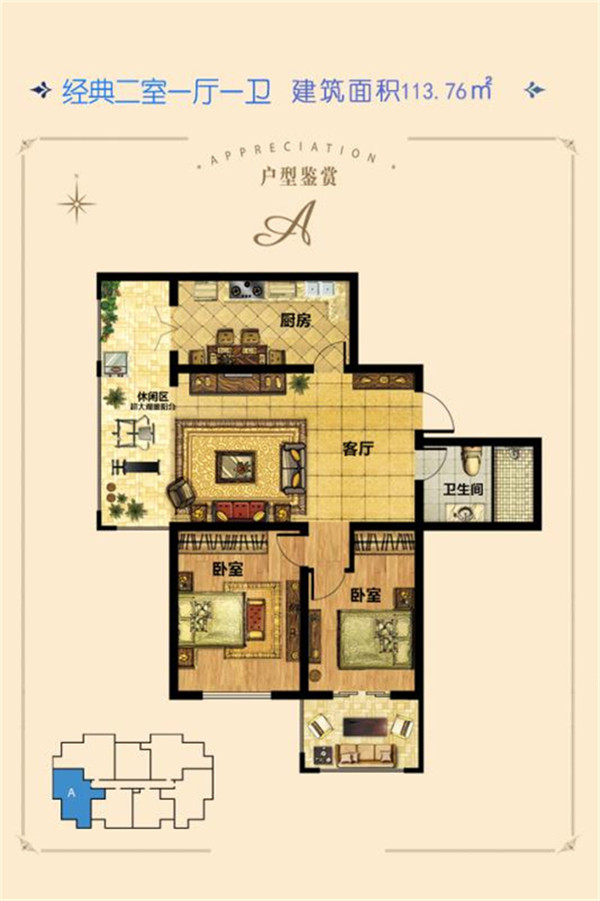 2室1厅1卫-A-建筑面积113.76㎡两居