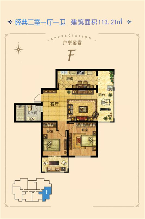 2室1厅1卫-F-建筑面积113.21㎡两居
