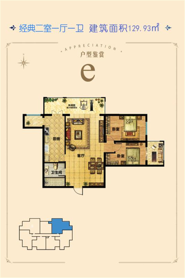 2室1厅1卫-E-建筑面积129.93㎡两居