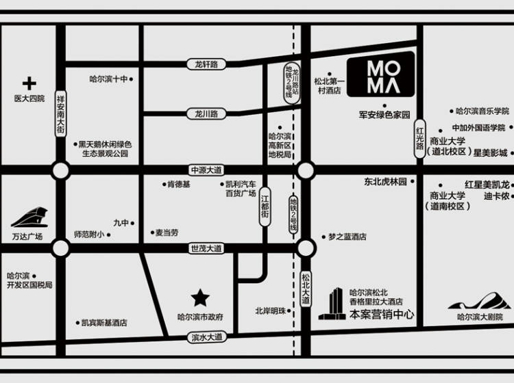 轨交:哈尔滨地铁2号线从去年就开始动工,预计2020年投入使用,从气象台始发站,途径太阳岛后直接到达本项目旁龙川路站,并与哈北站实现零换乘。