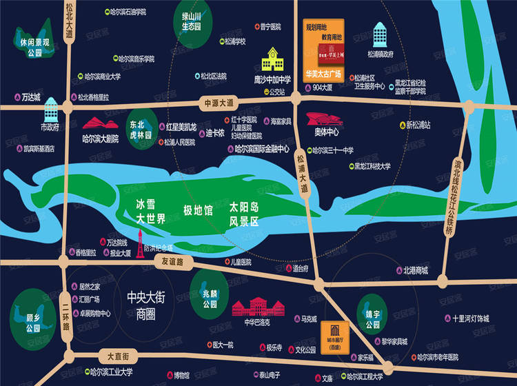 学校:项目未来将引进重点名校,哈尔滨商业大学、鹰沙中加学校、哈尔滨第88中、哈尔滨音乐学院等名校林立。