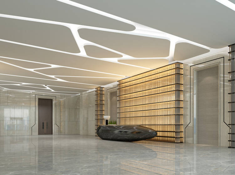 千米大堂,八部电梯(6部客梯,2部货梯),空调系统