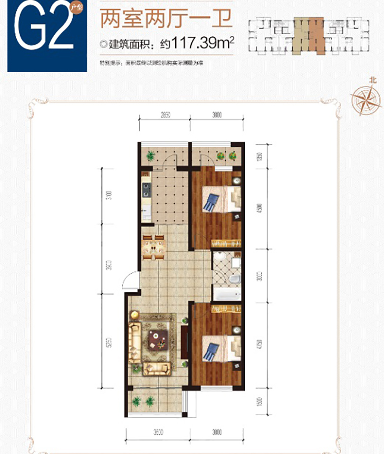 2室2厅1卫-二期小高层建面117.39㎡两室两厅一卫