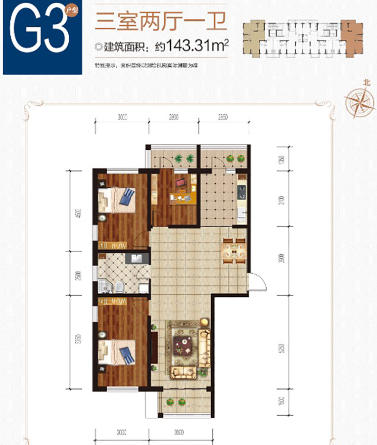 3室2厅1卫-二期小高层建面144.31㎡三室两厅一卫