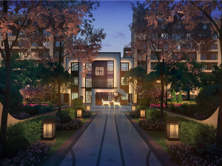 项目内打造奢阔新中式水景园林,1心5境,1环1轴,3区5连的景观格局,给业主带来少有的观景享受