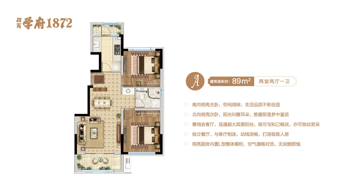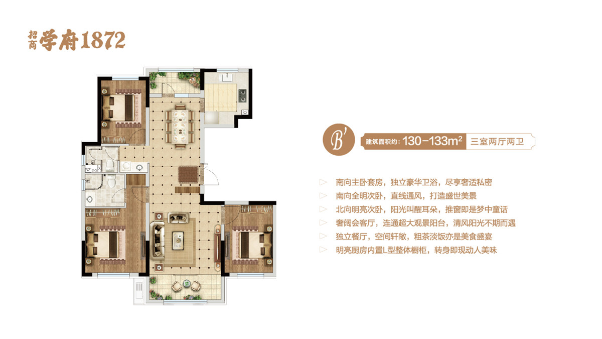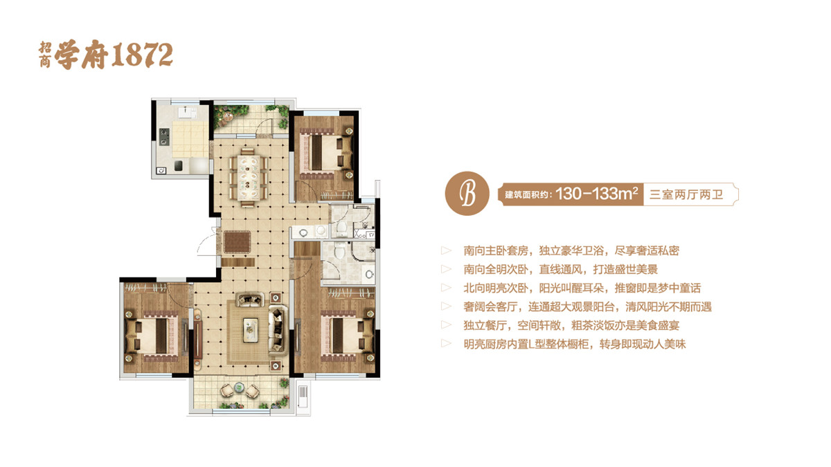 招商·学府1872,占地约3万㎡,开发规模约5.8万㎡,择址哈尔滨市平房区大连路、东海路围合处,雄踞平房核芯地段,占据平房区综合价值最优片区,拥享一城优质资源。周边配套醇熟,交通便捷,紧邻重点名校,文化氛围浓厚,居则宁静,出则繁华,城市黄金命脉一手掌握。项目整体建筑甄选新亚洲风格,产品以小高层为主,主推约89㎡南北通透两室户型以及约130㎡全明三室户型,提炼优居4.0体系、“6Y”价值,匠工筑造平房精品人居标杆。