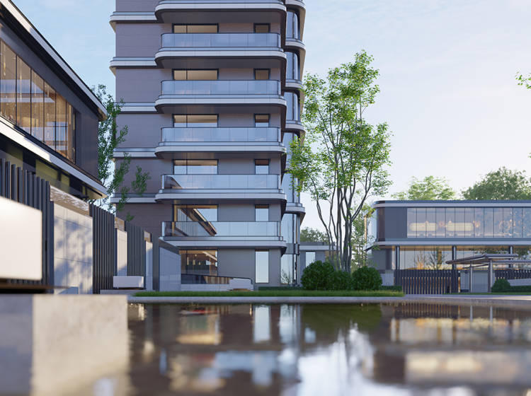 小区内同时配有下沉庭院、园林水系景观等设施,进入园区内部通过曲径通幽的道路和组团绿化打造五重叠景的园林设计风格,错落有致,真正做到一步一景、步步为景的归家仪式感。