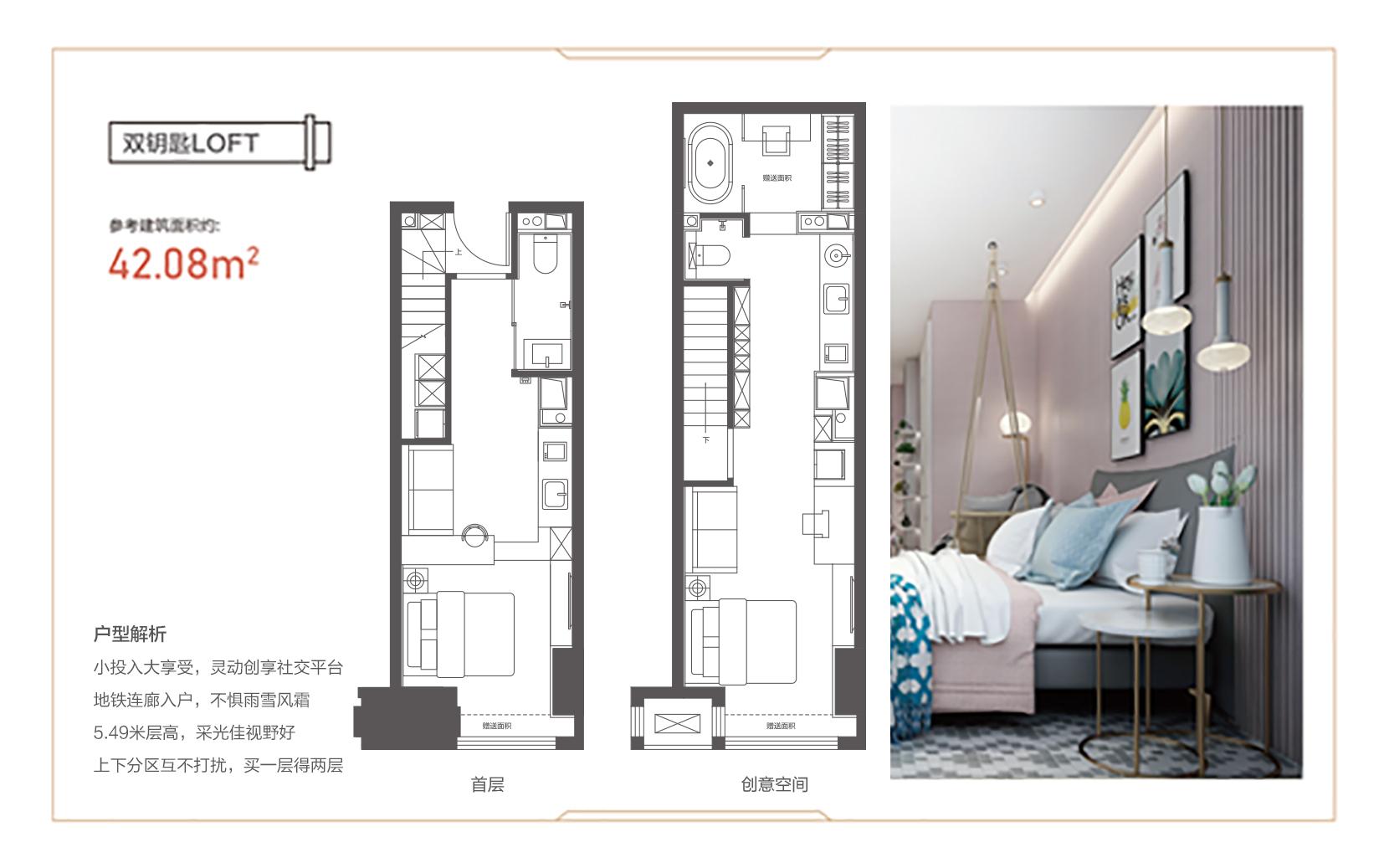 2室2厅2卫-双钥匙LOFT 42.08户型