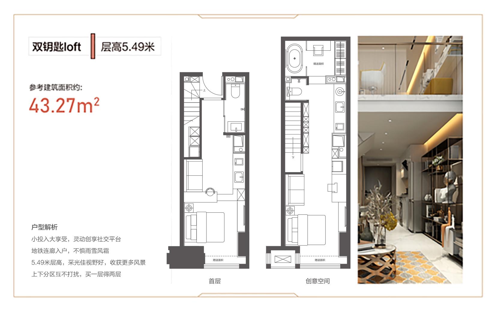 2室2厅2卫-双钥匙LOFT 43.27户型