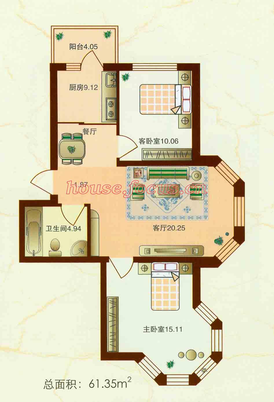 2室1厅1卫-西溪·橡园两室一厅一卫61.70㎡
