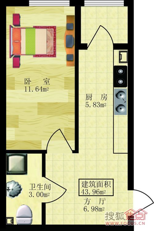 1室1厅1卫-西溪·橡园一室一厅一卫43.96㎡