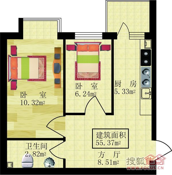 2室1厅1卫-西溪·橡园两室一厅一卫55.37㎡