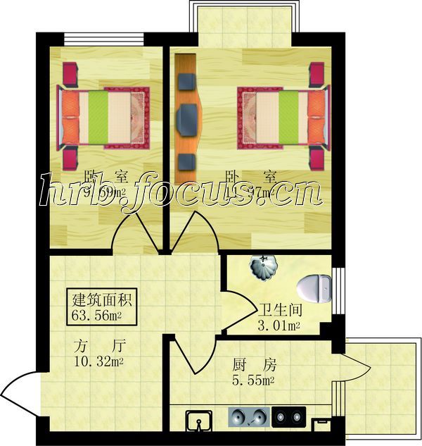 2室1厅1卫-西溪·橡园两室一厅一卫63.56㎡