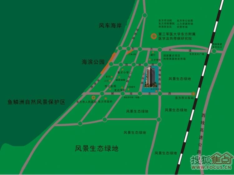 在海南省东方市从东方大道驶入禧龙中路,直行至解放东路路口即可到达项目。