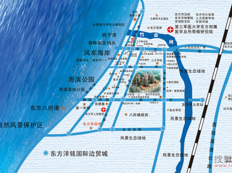 锦绣蓝湾由东方琼源实业发展有限公司与东方宇辉房地产投资有限公司合作开发建设,项目全过程由东方宇辉房地产投资有限公司独立操作。项目距离高铁站2公里,距海边3公里,三甲医院东方市人民医院,建行,工行,中行,邮局,电信宾馆酒店,农贸市场都在二公里范围内,日常生活购物非常方便。东方市内各条线路公交车招手即停,出行比较便捷。项目设2000平米会所一处,满足业主养生度假需求,近700平米泳池,儿童戏水池,老年活动广场,儿童活动广场,羽毛球场,空中酒吧,音乐走廊,使业主可以在庭院内感受到纯正的地中海风情,自在休闲。