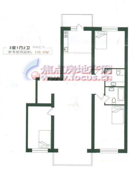 3室1厅2卫-南郡新城三室一厅110.37㎡