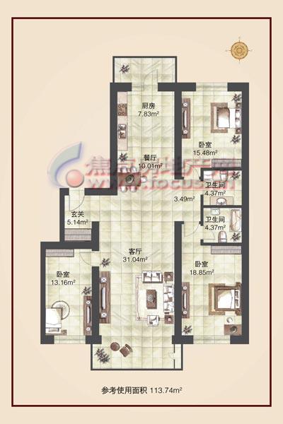 3室1厅2卫-南郡新城三室一厅113.74㎡