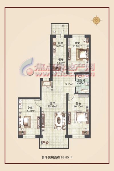3室1厅1卫-南郡新城三室一厅88.85㎡