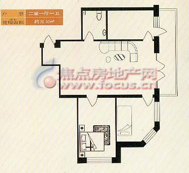 2室1厅1卫-南郡新城二室一厅70.37㎡