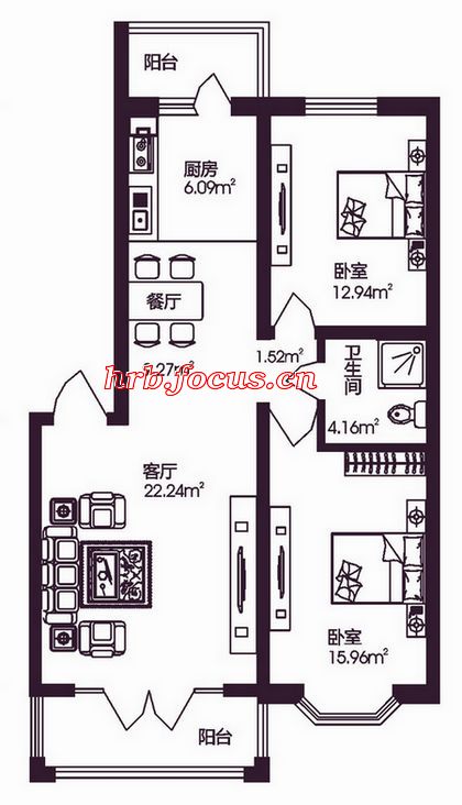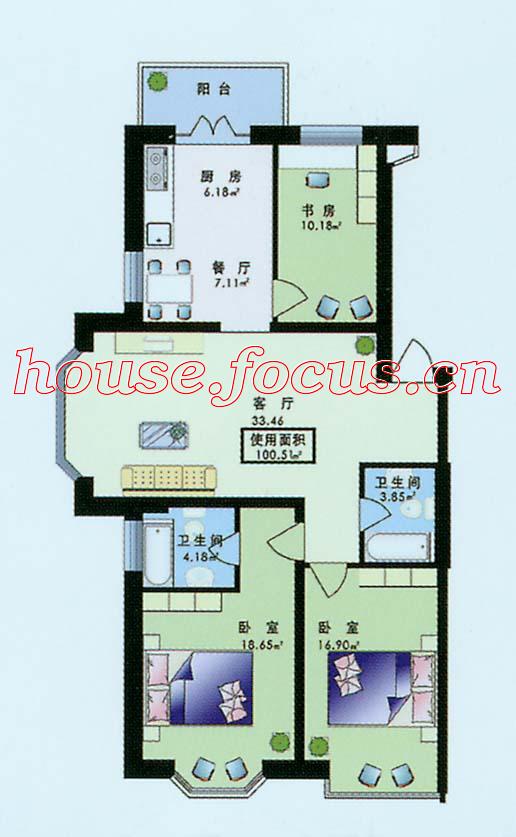 2室2厅1卫-新新怡园二期·观天下两室两厅一卫72.18㎡