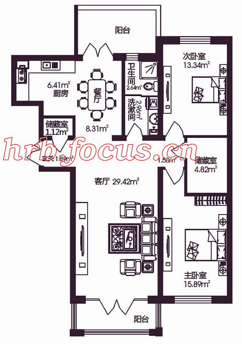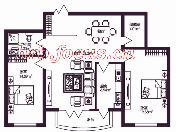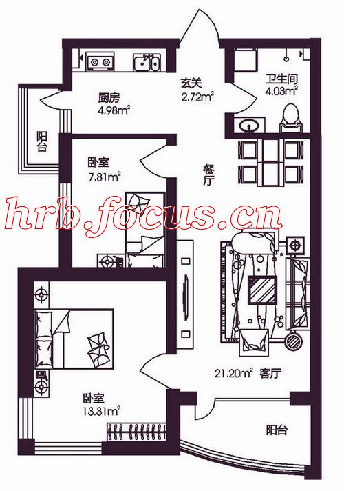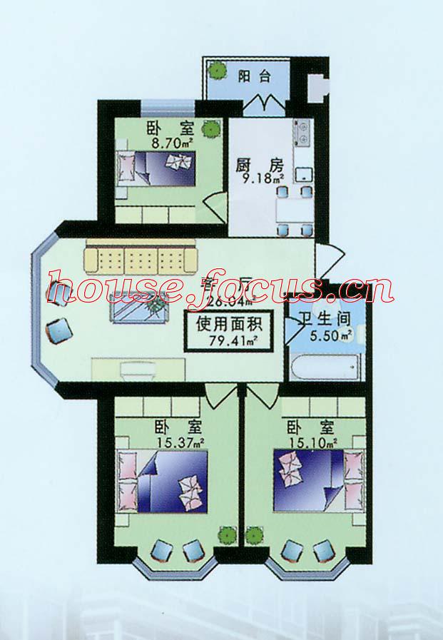 2室2厅1卫-新新怡园二期·观天下两室两厅一卫84.31㎡