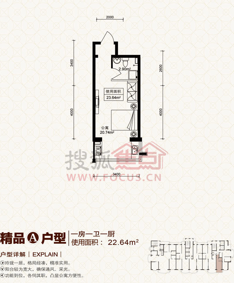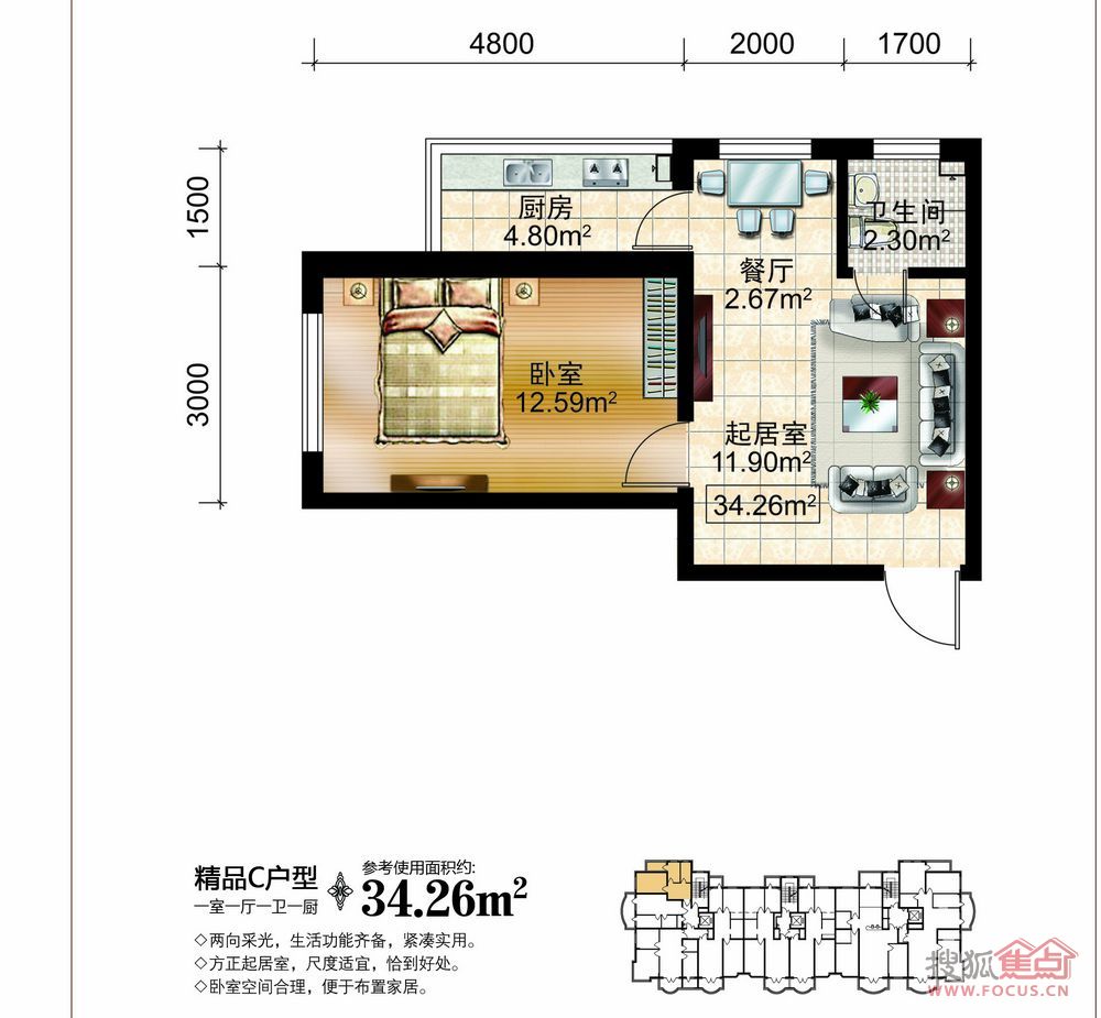 1室1厅1卫-一室一厅一卫34.26㎡户型