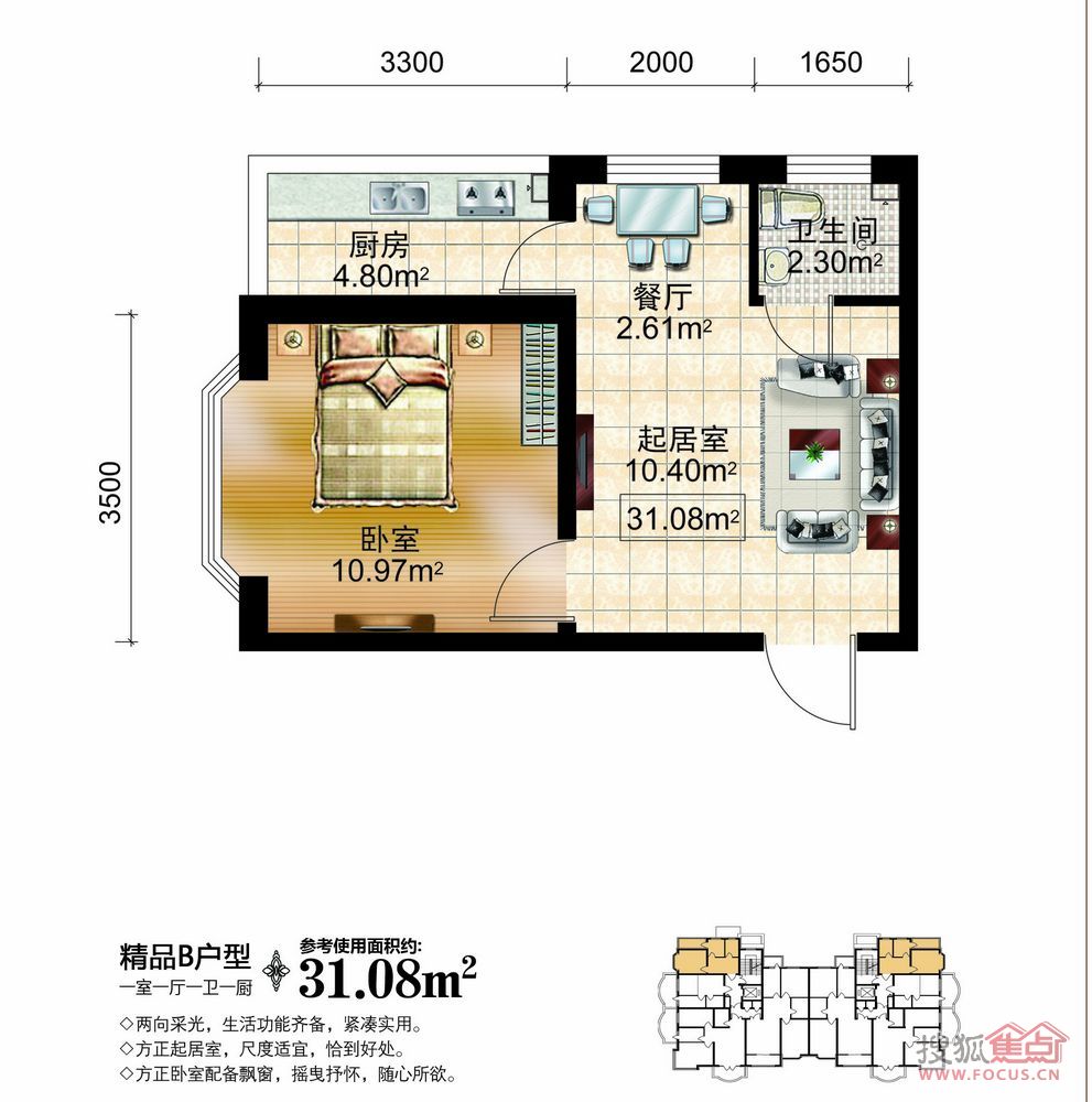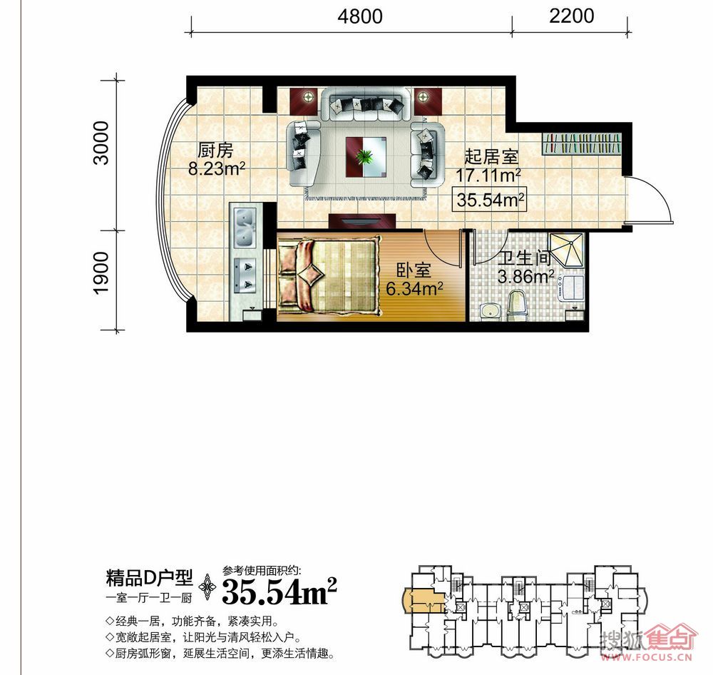 1室1厅1卫-一室一厅一卫35.54㎡户型