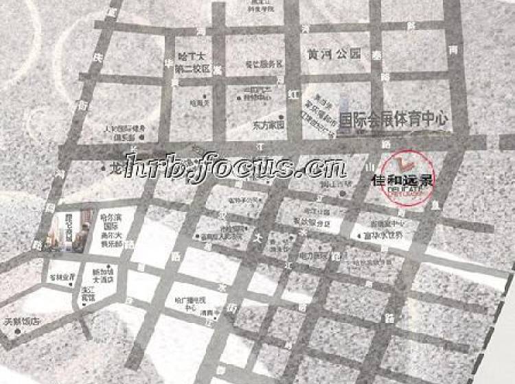 佳和远景在对哈尔滨同际会展体育中心,集体育会馆、会展中心、华旗饭店于一体,而身后,几乎集中了开以区的教育设施、活动设施 、运动场所、高档酒店和消费场所,虹桥学校、体育场及其会所、老干部活动中心和儿童科技馆。昆仑商城、英国的“百安居”国际装饰建材连锁店、法国家乐福超市、红博世纪广场、东方家园、还有黄河公园地下正在建设中的集餐饮、购物、娱乐为一体的一站式休闲广场。
