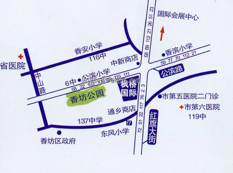 乘68、22、103、108、69、115、111路红旗大街通乡商店下车,还有59、70、77、112、117、26、69等。,红旗大街,通乡商场,香房公园,公宾路